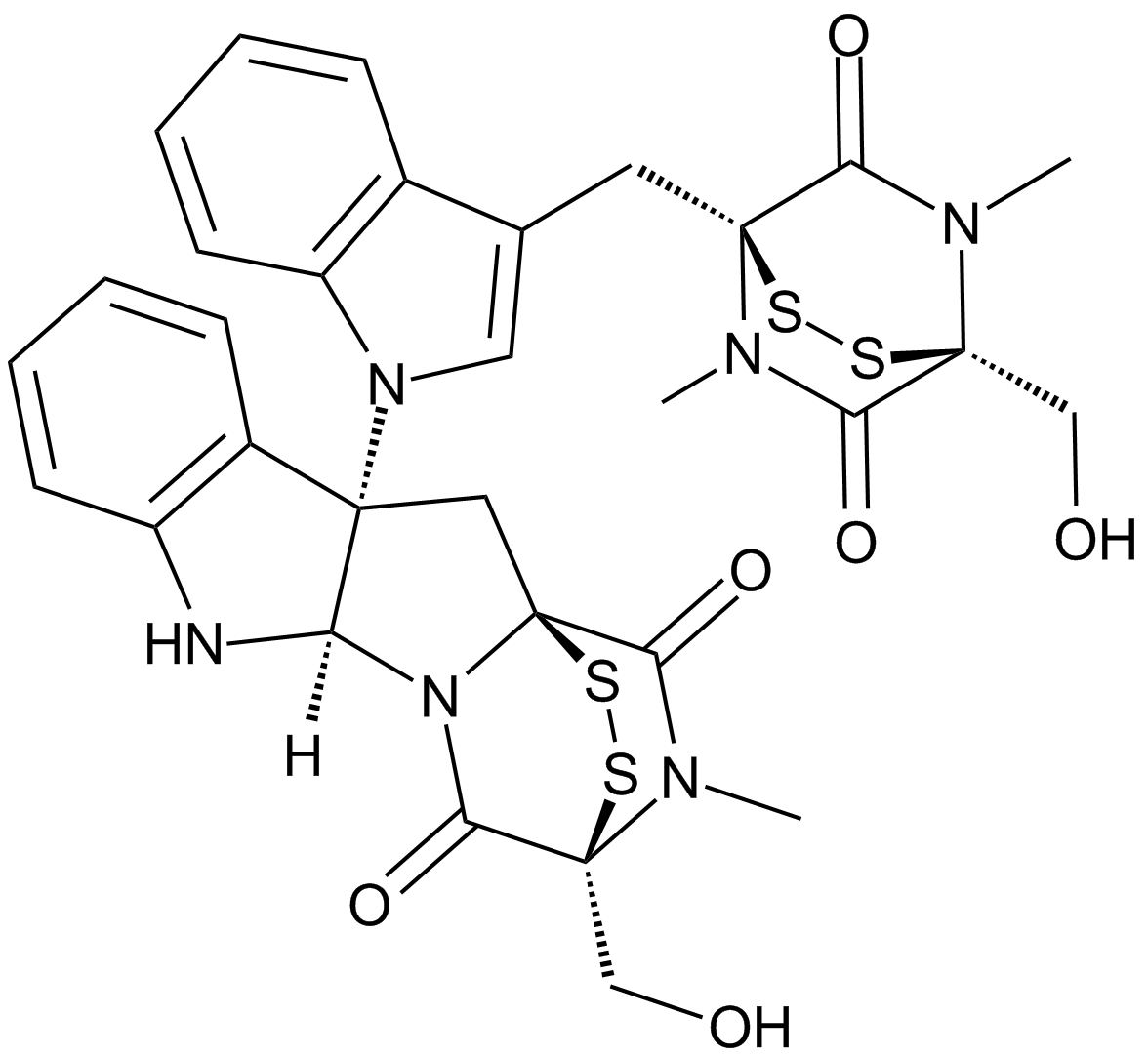 Chemical Name: (3S,5aR,10bS,11aS)-2,3,5a,6,10b,11-hexahydro-3-(hydroxymethyl)-10b-(3-[(1S,4S)-3-[[4-(hydroxymethyl)-5,7-dimethyl-6,8-dioxo-2,3-dithia-5,7-diazabicyclo[2.2.2]oct-1-yl)methyl]-1H-indol-1-yl]-2-methyl-3,11a-epidithio-11aH-pyrazino[1,2:1,5]pyrrolo[2,3-b]indo