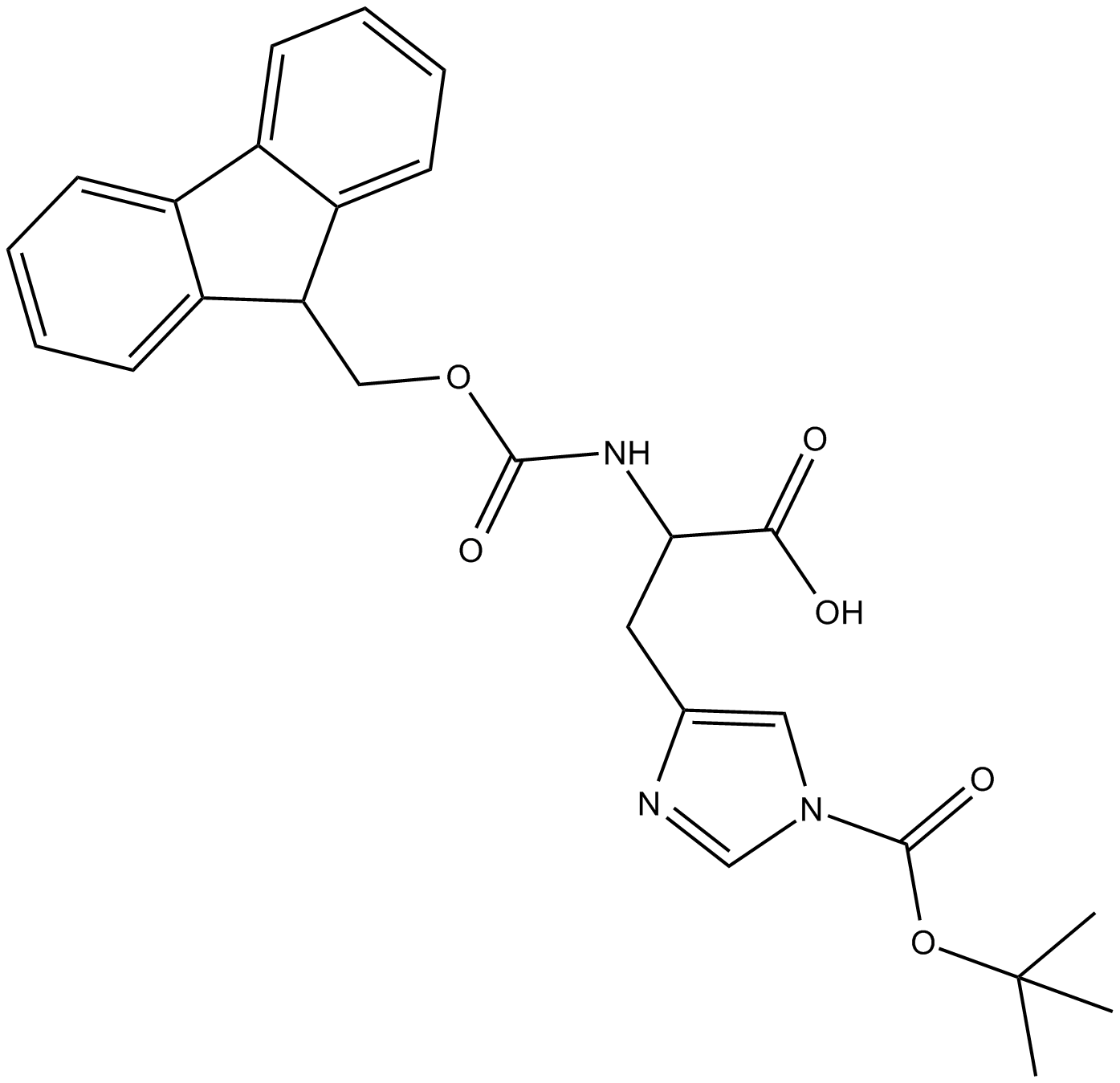 Chemical Name: (2S)-2-(9H-fluoren-9-ylmethoxycarbonylamino)-3-[1-[(2-methylpropan-2-yl)oxycarbonyl]imidazol-4-yl]propanoic acid