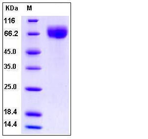 | Molecular Weight | The recombinant human IFN-γR1/Fc is a disulfide-linked homodimeric Protein after removal of the signal peptide. The reduced monomer consists of 475 amino acids and predicts a molecular mass of 53.7 kDa. By SDS-PAGE under reducing conditions, the apparent molecular mass of rhIFN-γR1/Fc is approximately 75-80 kDa due to the glycosylation. |