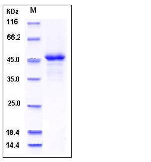 | Molecular Weight | The recombinant human ILKAP comprises 403 amino acids with a predicted molecular mass of 44.3 kDa. The apparent molecular mass of rh ILKAP is approximately 46 kDa in SDS-PAGE under reducing conditions. |