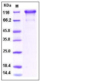 | Molecular Weight | The recombinant human PDGFRα/Fc is a disulfide-linked homodimeric protein after removal of the signal peptide. The reduced monomer consists of 739 amino acids and predicts a molecular mass of 82.9 kDa. By SDS-PAGE under reducing conditions, the apparent molecular mass of rhPDGFRα/Fc is approximately 120-130 kDa due to the glycosylation. |