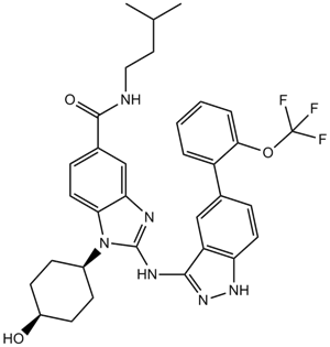 Chemical Name: 1-(4-hydroxycyclohexyl)-N-(3-methylbutyl)-2-[[5-[2-(trifluoromethoxy)phenyl]-1H-indazol-3-yl]amino]benzimidazole-5-carboxamide