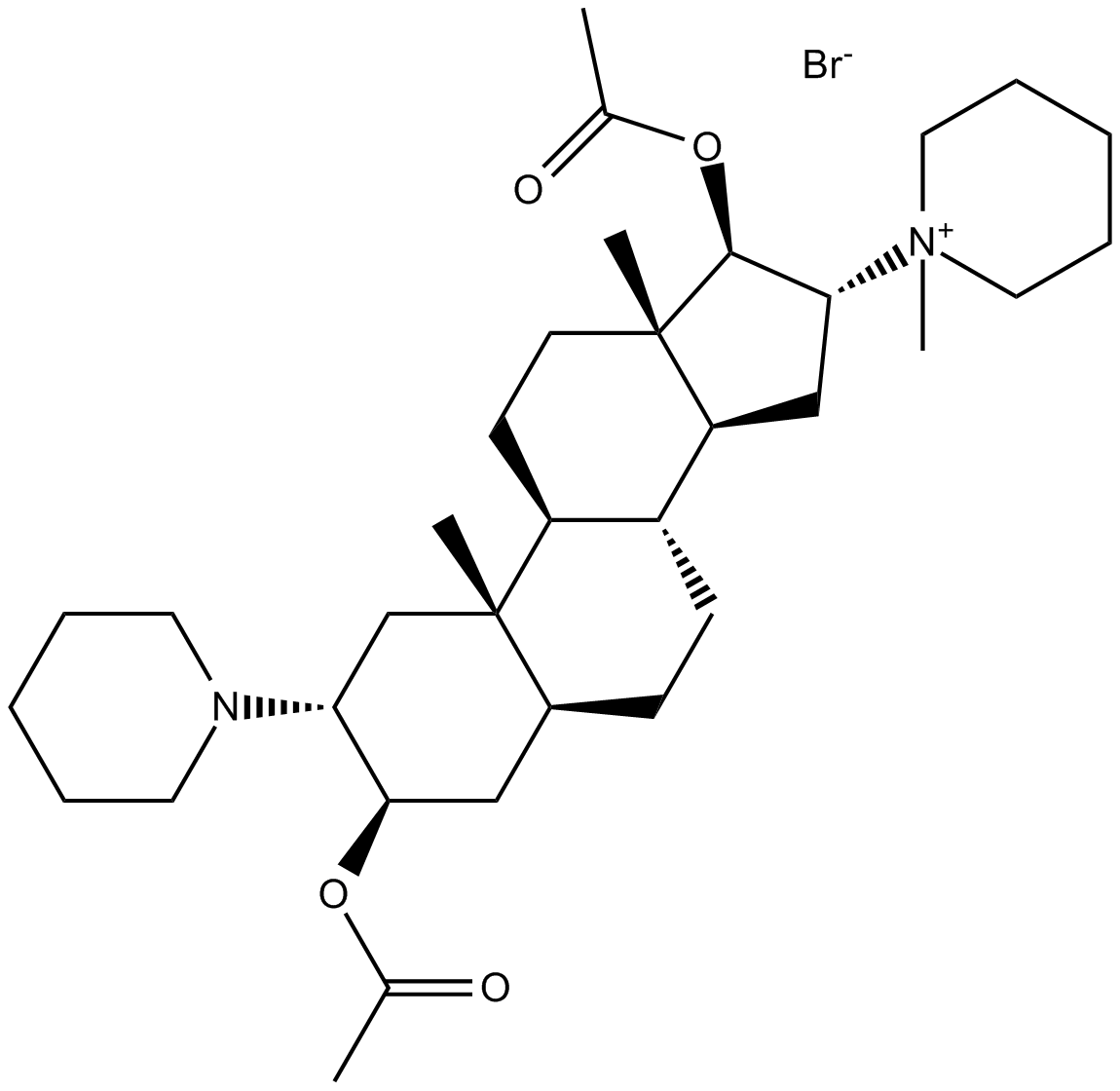 Chemical Name: [(2S,3S,5S,8R,9S,10S,13S,14S,16S,17R)-17-acetyloxy-10,13-dimethyl-16-(1-methylpiperidin-1-ium-1-yl)-2-piperidin-1-yl-2,3,4,5,6,7,8,9,11,12,14,15,16,17-tetradecahydro-1H-cyclopenta[a]phenanthren-3-yl] acetate;bromide